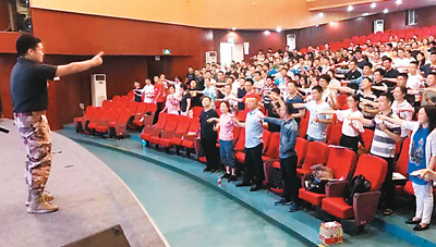 2018“平安留學(xué)”行前培訓(xùn)在貴州、成都等地舉行。圖為西南交通大學(xué)培訓(xùn)會(huì)現(xiàn)場,學(xué)生和教官在進(jìn)行互動(dòng)。出國留學(xué)行前培訓(xùn)微信公眾號(hào)供圖