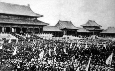 圖示:1945年9月,北平(今北京)各界民眾慶??箲?zhàn)勝利。