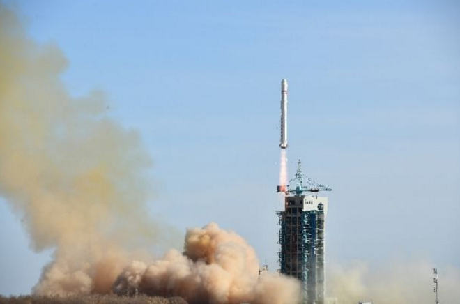 2018年2月2日,中國和意大利聯(lián)合研制的電磁監(jiān)測試驗衛(wèi)星“張衡一號”在酒泉衛(wèi)星發(fā)射中心用長征二號丁運載火箭發(fā)射升空。新華社發(fā)(汪江波 攝)