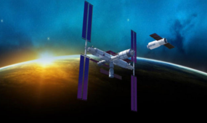 中國空間站構(gòu)想圖。(中國航天科技集團五院供圖)