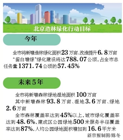 市園林綠化局副局長蔡寶軍告訴記者,新一輪百萬畝造林綠化總體規(guī)劃,將在城市核心區(qū)實(shí)現(xiàn)生態(tài)景觀重塑,中心城區(qū)和新城區(qū)多元增綠,形成城市森林與公園綠地為主體的城市綠化體系。未來,北京市將以城市副中心、北京新機(jī)場、冬奧會(huì)、永定河、大運(yùn)河、“三山五園”、十八里店、南中軸等重點(diǎn)區(qū)域綠化為節(jié)點(diǎn),形成大尺度森林濕地群落、高品質(zhì)綠地公園組團(tuán)、多景觀田園村莊綠化為主體的綠化體系。