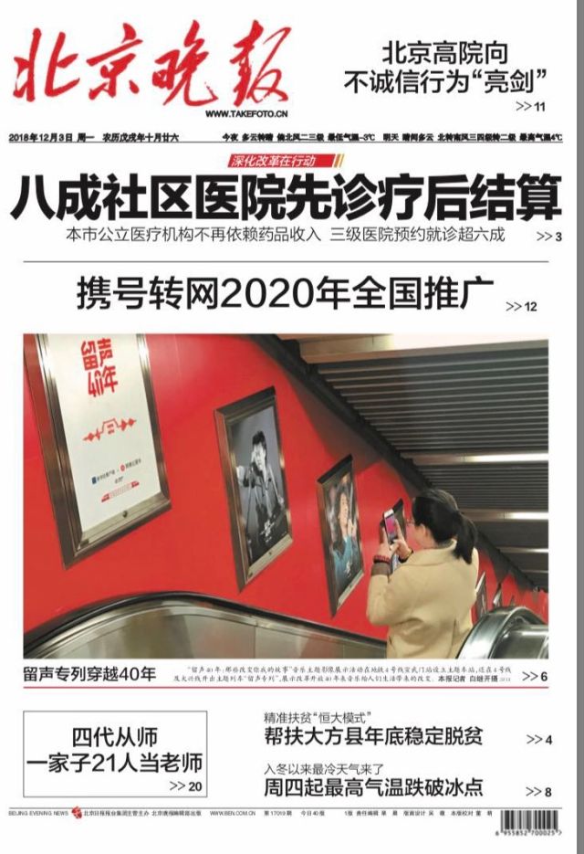 騰訊新聞客戶端、騰訊視頻,搜狐視頻以及新京報(bào)“我們視頻”等對影像展進(jìn)行了專題報(bào)道及視頻推送。《北京晚報(bào)》頭版展示了本次影像展,并大篇幅介紹了“留聲40年”音樂車廂的情況。北青網(wǎng)聯(lián)合“北京頭條”App在影像展當(dāng)天推出了多張圖片報(bào)道。今日頭條、觀媒等媒體機(jī)構(gòu)制作的影像展小視頻和公眾號推文在各大網(wǎng)站和朋友圈廣泛傳播,為“留聲40年”影像展?fàn)I造了濃厚的輿論氛圍。