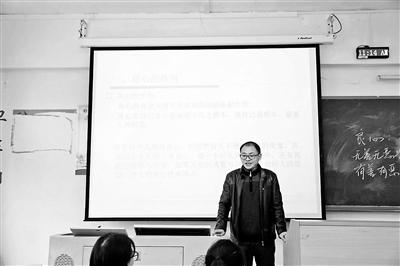 李明勇站在講臺(tái)上為學(xué)生上課