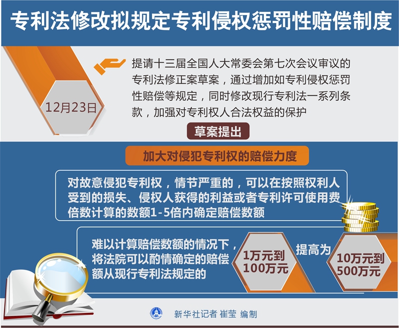 專利法修改擬規(guī)定專利侵權(quán)懲罰性賠償制度 新華社記者 崔瑩 編制