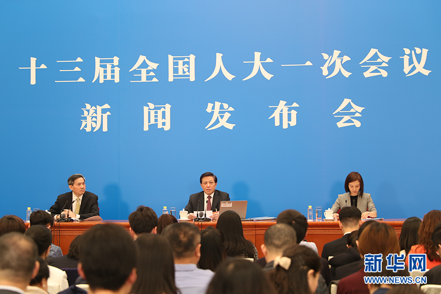 3月4日,十三屆全國(guó)人大一次會(huì)議在人民大會(huì)堂新聞發(fā)布廳舉行新聞發(fā)布會(huì),由大會(huì)發(fā)言人張業(yè)遂就大會(huì)議程和人大工作相關(guān)的問(wèn)題回答中外記者的提問(wèn)。圖為大會(huì)發(fā)言人回答中外記者提問(wèn)。新華網(wǎng)/中國(guó)政府網(wǎng) 陳杰 攝