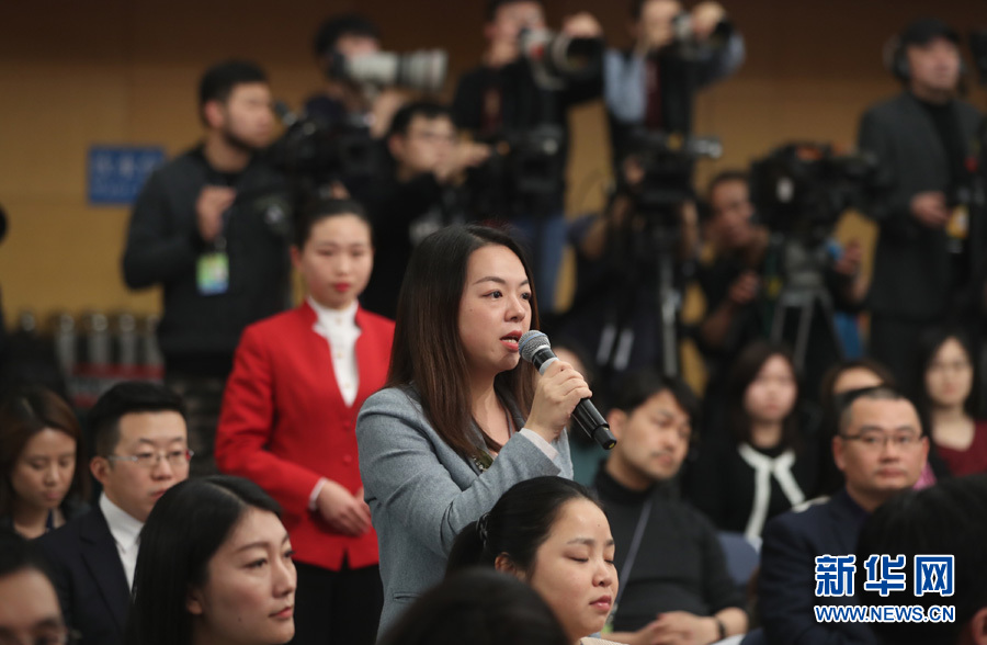 ??? 十三屆全國人大一次會(huì)議新聞中心3月10日15時(shí)在梅地亞中心多功能廳舉行記者會(huì),邀請(qǐng)國務(wù)院國資委主任肖亞慶,副秘書長、新聞發(fā)言人彭華崗就“國有企業(yè)改革發(fā)展”相關(guān)問題回答中外記者提問。圖為財(cái)新周刊記者提問。新華網(wǎng)/中國政府網(wǎng)?曲植 攝?