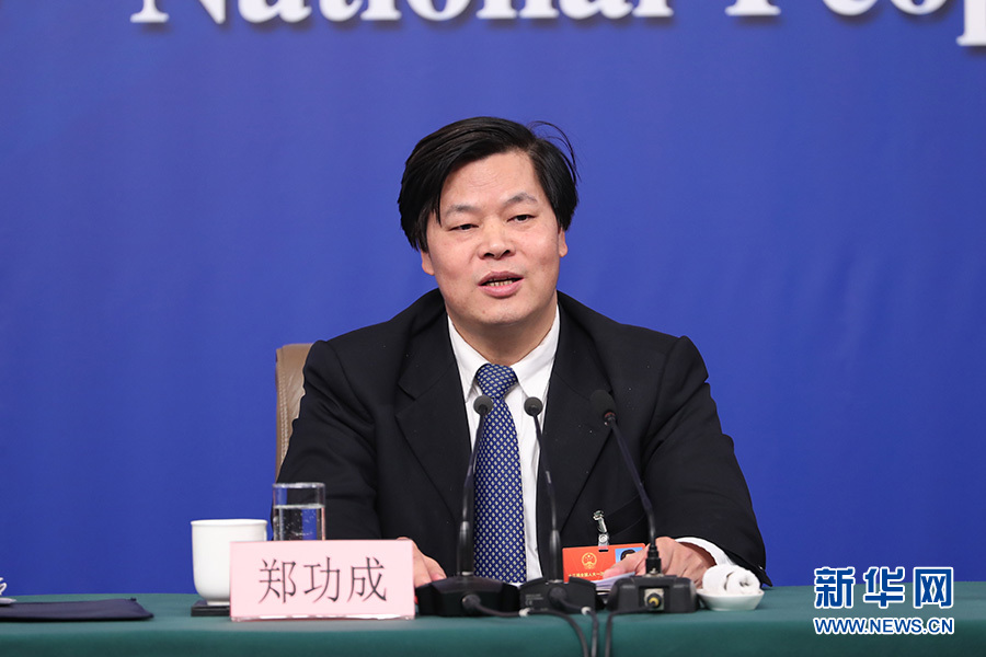 十三屆全國(guó)人大一次會(huì)議新聞中心于3月12日15時(shí)在梅地亞中心多功能廳舉行記者會(huì),邀請(qǐng)十二屆全國(guó)人大財(cái)經(jīng)委副主任委員尹中卿、教科文衛(wèi)委副主任委員吳恒、環(huán)資委副主任委員袁駟、內(nèi)司委委員鄭功成,全國(guó)人大常委會(huì)預(yù)算工委副主任劉修文、常委會(huì)辦公廳秘書局巡視員傅文杰就“人大監(jiān)督工作”相關(guān)問題回答中外記者提問。圖為內(nèi)司委委員鄭功成回答記者提問。新華網(wǎng)/中國(guó)政府網(wǎng) 陳杰攝