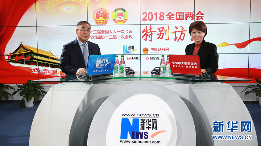 3月12日,全國(guó)人大代表,中國(guó)中醫(yī)科學(xué)院院長(zhǎng)、天津中醫(yī)藥大學(xué)校長(zhǎng)張伯禮院士(左)做客新華網(wǎng)2018全國(guó)兩會(huì)特別訪談。新華網(wǎng) 楊锘攝
