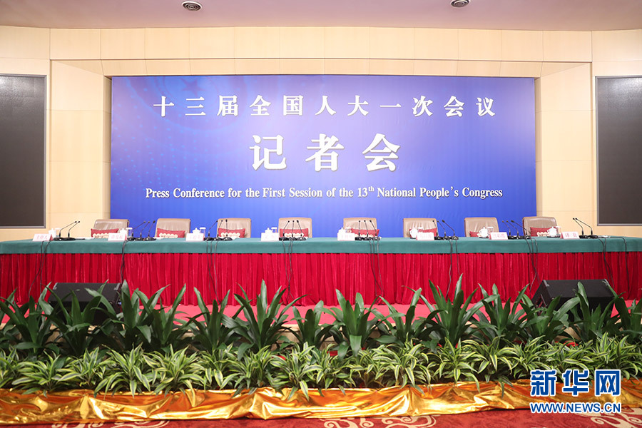 3月12日,十三屆全國人大一次會議新聞中心在梅地亞中心多功能廳舉行記者會,邀請十二屆全國人大內(nèi)司委副主任委員王勝明、財(cái)經(jīng)委副主任委員烏日圖、教科文衛(wèi)委副主任委員吳恒、環(huán)資委委員呂彩霞,全國人大常委會法工委副主任王超英、副主任許安標(biāo)就“人大立法工作”相關(guān)問題回答中外記者提問。圖為記者會開始前。新華網(wǎng)/中國政府網(wǎng) 翟子赫 攝