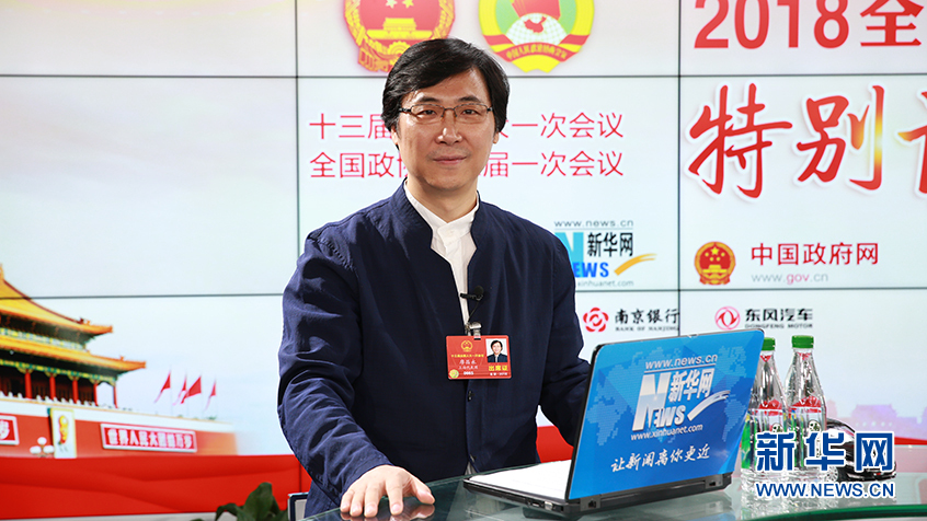 圖為14日,全國(guó)人大代表,著名男中音歌唱家、中國(guó)音樂(lè)家協(xié)會(huì)副主席、上海音樂(lè)學(xué)院副院長(zhǎng)廖昌永做客新華網(wǎng)2018全國(guó)兩會(huì)特別訪談。新華網(wǎng) 楊锘攝