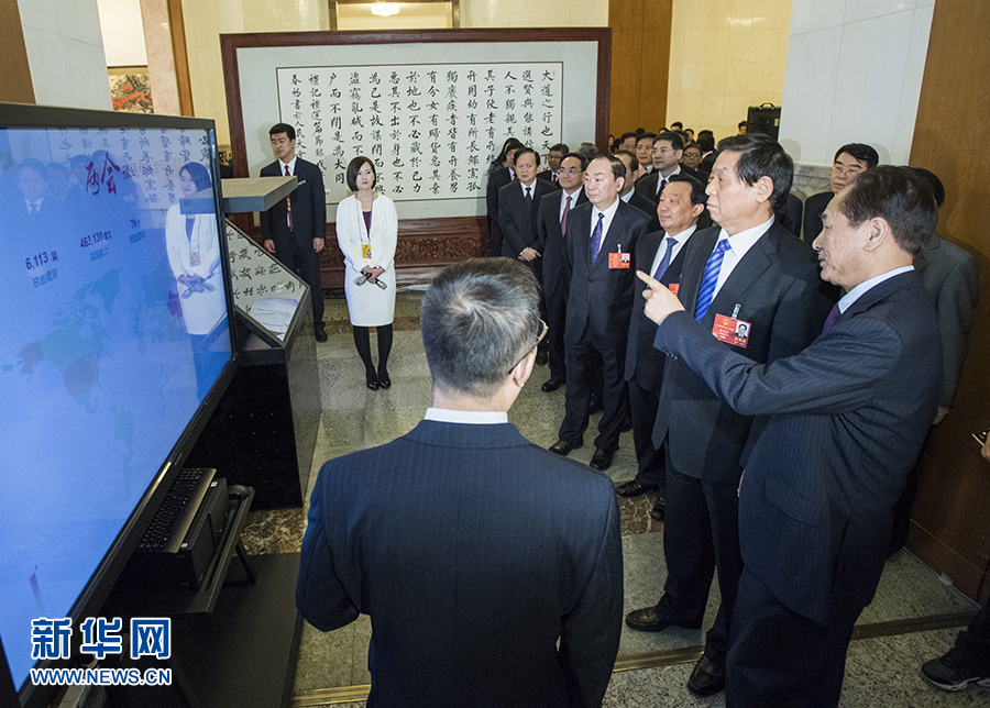 隨后,栗戰(zhàn)書走進設(shè)在人民大會堂一樓大廳的新華社兩會新聞報道中心,仔細觀看了微視頻《誓言》、人工智能產(chǎn)品《“媒體大腦”帶你看憲法宣誓》、新華社兩會報道實時大數(shù)據(jù)展示、新華網(wǎng)“奮進新時代 筑夢新征程”兩會融媒體專題等,看望正在這里緊張工作的采編和技術(shù)人員,與參加兩會報道的新華社外籍記者親切交談。在觀看了新華社制作的融媒體產(chǎn)品《“90后”全國人大代表程桔:小丫回村當(dāng)書記》后,栗戰(zhàn)書對新聞媒體創(chuàng)新兩會報道給予充分肯定。