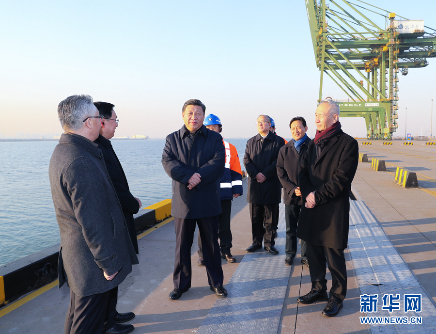 1月16日至18日,中共中央總書記、國家主席、中央軍委主席習(xí)近平在京津冀考察,主持召開京津冀協(xié)同發(fā)展座談會并發(fā)表重要講話。這是1月17日下午,習(xí)近平在天津港碼頭考察。 新華社記者 鞠鵬 攝