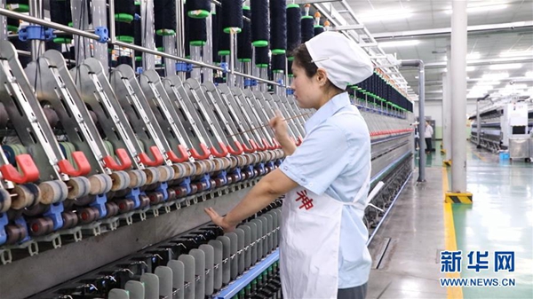 2月18日,在蘭州三毛實業(yè)股份有限公司紡紗廠,范冬云在進行“接線”操作。新華社發(fā)(張智敏 攝)