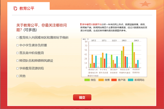 在新華網(wǎng)推出的2019全國兩會熱點調(diào)查中,教育公平位居榜首,截至目前,關(guān)注度占比9.17%,成為網(wǎng)民兩會期間最關(guān)心的話題。