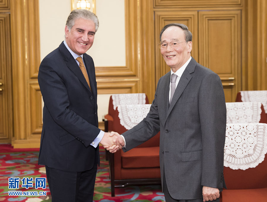 會見庫雷希時(shí),王岐山表示,中巴是好鄰居。中巴友誼歷經(jīng)時(shí)間和國際風(fēng)云變幻考驗(yàn),得到兩國人民真心擁護(hù)。近年來,兩國領(lǐng)導(dǎo)人往來頻繁,全天候戰(zhàn)略合作伙伴關(guān)系不斷取得新進(jìn)展。在相互理解、相互信任基礎(chǔ)上建設(shè)睦鄰友好關(guān)系,營造良好周邊環(huán)境,是一國實(shí)現(xiàn)和平發(fā)展的重要條件。中方支持巴方抓住機(jī)遇、應(yīng)對挑戰(zhàn),妥善處理鄰國關(guān)系,實(shí)現(xiàn)巴基斯坦穩(wěn)定發(fā)展。希望兩國繼續(xù)深化全方位合作,推動中巴經(jīng)濟(jì)走廊等“一帶一路”重要先行先試項(xiàng)目取得更多成果。