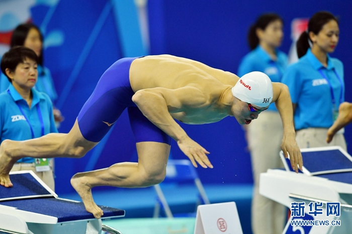3月27日,浙江隊選手孫楊在比賽中出發(fā)。當日,在青島舉行的2019年全國游泳冠軍賽暨世錦賽選拔賽男子800米自由泳決賽中,浙江隊選手孫楊以7分48秒03的成績獲得冠軍。 新華社記者朱崢攝