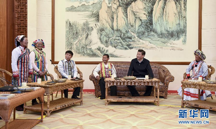 2015年1月20日,習(xí)近平在昆明親切會見怒江州貢山獨(dú)龍族怒族自治縣干部群眾代表