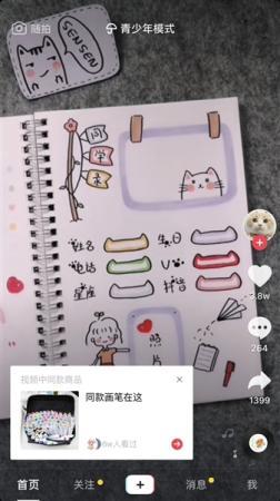 記者在用青少年模式瀏覽抖音所推送的視頻時看到,不少視頻內(nèi)容上傳者在展示繪畫、書法等技巧時,左下角總會“恰到好處”地彈出視頻中所使用的工具購買鏈接。