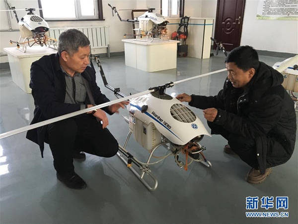孫斌(左)在公司與同事一起保養(yǎng)無人機(jī)(2月2日攝)。新華社記者 王君寶 攝