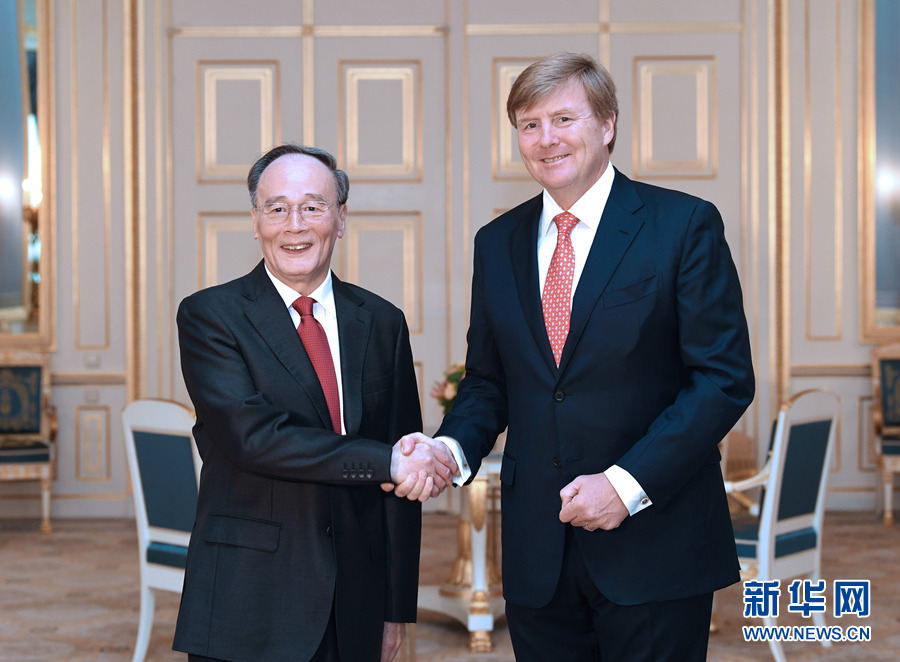 應(yīng)荷蘭首相呂特邀請,國家副主席王岐山當(dāng)?shù)貢r間5月28日至30日訪問荷蘭,分別會見威廉-亞歷山大國王和呂特首相。這是5月29日,王岐山在海牙會見荷蘭國王威廉-亞歷山大。 新華社記者 饒愛民 攝