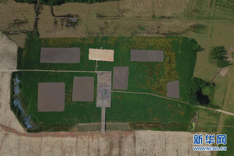 6月23日無人機(jī)拍攝的位于浙江省杭州市的良渚國(guó)家考古遺址公園的宮殿區(qū)。新華社記者 黃宗治 攝