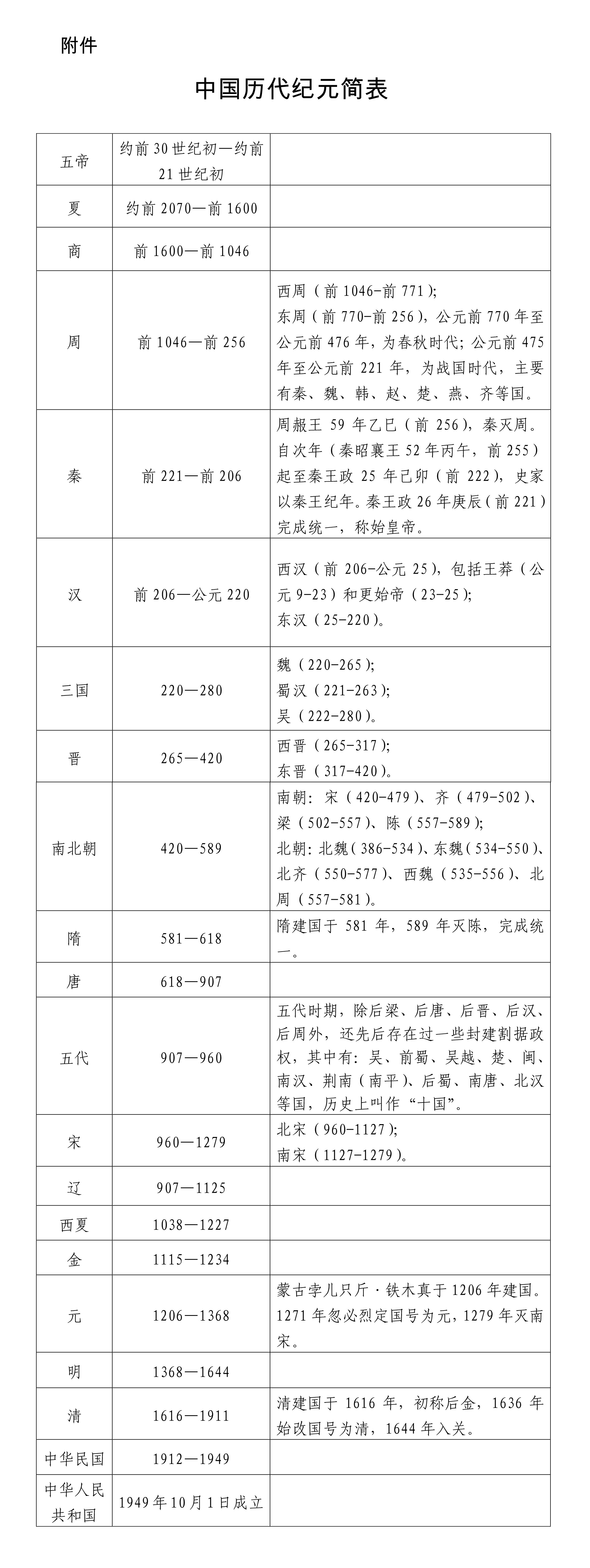 附件:中國歷代紀元簡表