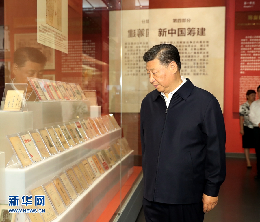 9月12日,中共中央總書記、國(guó)家主席、中央軍委主席習(xí)近平視察中共中央北京香山革命紀(jì)念地。這是習(xí)近平在香山革命紀(jì)念館參觀《為新中國(guó)奠基》主題展覽,并發(fā)表重要講話。 新華社記者 黃敬文 攝
