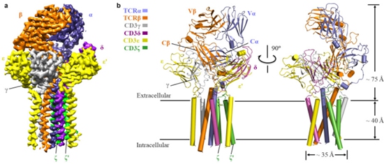 對此,文章審稿人的評價是:“該研究工作代表了細胞適應性免疫的分子機理研究的一個重要里程碑。通過闡明第一個在膜上組裝的T細胞受體和其CD3共受體的結(jié)構(gòu),極大地增加了我們對T細胞識別抗原反應的激活機制的理解。”