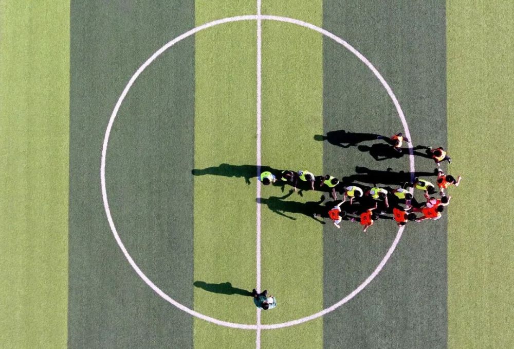 2019年4月17日,太行山深處,初中組男子足球隊(duì)隊(duì)員在分組對(duì)抗賽開(kāi)始前互相擊掌。(新華社記者詹彥 攝)