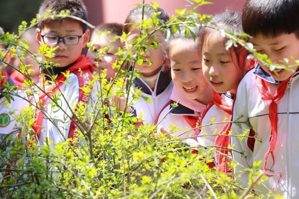 2019年4月1日,江蘇省無(wú)錫市揚(yáng)名中心小學(xué)的學(xué)生賞春踏青。(視覺(jué)中國(guó)圖)