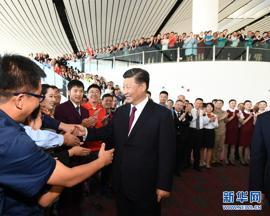 大興機(jī)場航站樓,是目前全球最大規(guī)模的單體航站樓,以其獨特的造型設(shè)計、精湛的施工工藝、便捷的交通組織、先進(jìn)的技術(shù)應(yīng)用,創(chuàng)造了許多世界之最。航站樓里,流線型的空間結(jié)構(gòu)十分寬敞明亮。習(xí)近平步行巡覽站臺大廳和值機(jī)大廳,實地了解值機(jī)、安檢、登機(jī)和殘疾人無障礙設(shè)施等情況,并結(jié)合沙盤和模型聽取機(jī)場總體規(guī)劃、設(shè)施建設(shè)等介紹。習(xí)近平強(qiáng)調(diào),大興國際機(jī)場是首都的重大標(biāo)志性工程,是推動京津冀協(xié)同發(fā)展的骨干工程。京津冀三地要抓住機(jī)遇加強(qiáng)協(xié)同合作,加快推動地區(qū)高質(zhì)量發(fā)展。民航業(yè)是國家重要的戰(zhàn)略產(chǎn)業(yè)。要建設(shè)更多更先進(jìn)的航空樞紐、更完善的綜合交通運輸系統(tǒng),加快建設(shè)交通強(qiáng)國。