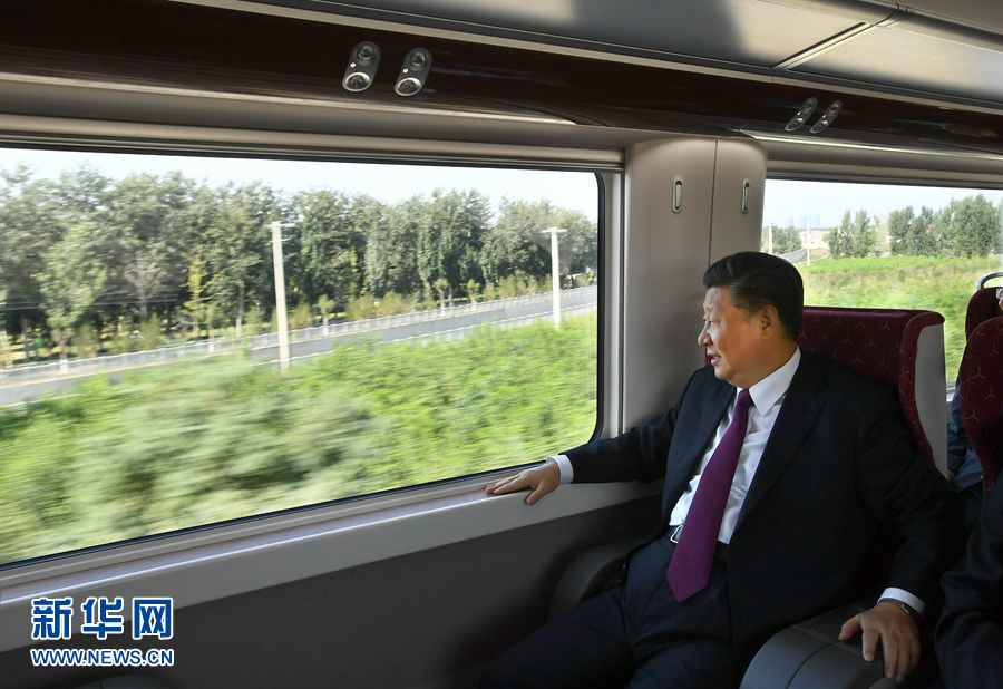 9月25日上午,北京大興國際機(jī)場投運儀式在北京舉行。中共中央總書記、國家主席、中央軍委主席習(xí)近平出席儀式,宣布機(jī)場正式投運并巡覽航站樓。這是習(xí)近平乘坐軌道列車前往北京大興國際機(jī)場。 新華社記者 謝環(huán)馳 攝