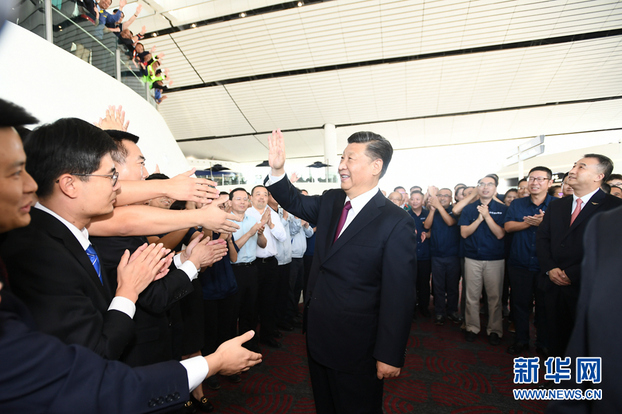 投運儀式在機(jī)場聯(lián)檢大廳舉行。11時許,伴隨著歡快的迎賓曲,習(xí)近平等步入儀式現(xiàn)場,全場起立鼓掌。
