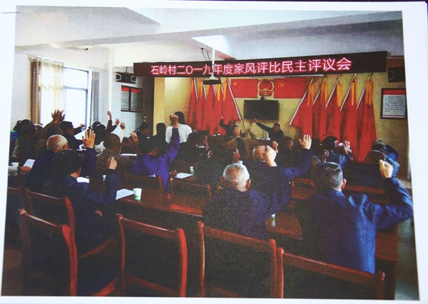 ▲湖南岳陽(yáng)平江縣梅仙鎮(zhèn)石嶺村家風(fēng)評(píng)比現(xiàn)場(chǎng)(翻拍)。