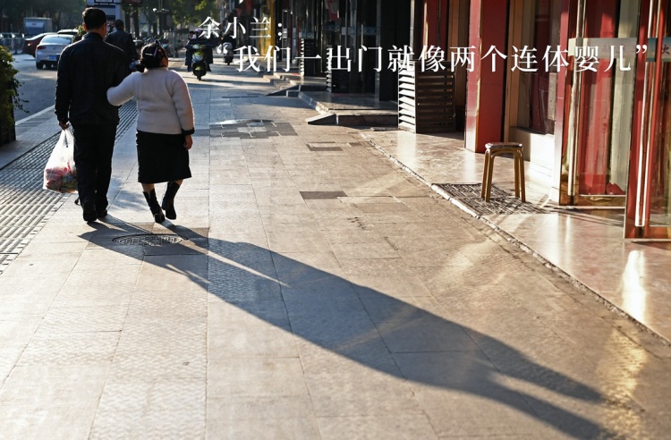 回家的前一天,夫妻倆忙完活后,相互攙扶著上街給家里人買(mǎi)年貨。一根盲杖,為夫妻二人指引著方向。