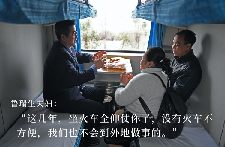 火車(chē)上,列車(chē)長(zhǎng)專(zhuān)門(mén)給他們安排了個(gè)臥鋪空位。車(chē)廂里三個(gè)人聊起了家常,不知不覺(jué)火車(chē)駛進(jìn)了上饒站。