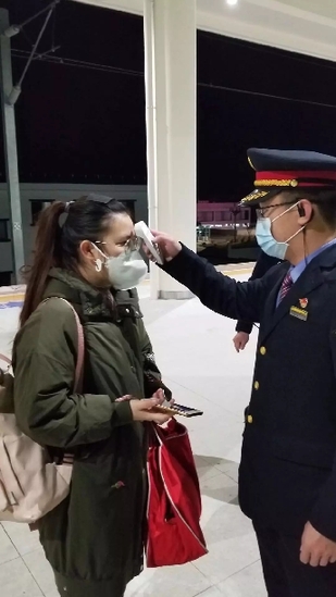 9時54分,D785次列車到達(dá)昆明南站,昆明南站的工作人員再次給她測了體溫沒問題后,立即帶她去找昆明南開往南京南的G1540次列車的列車長張峻豪。10時20分,郎冰凝坐上了G1540次列車奔向武漢。