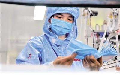 近日,河南省長(zhǎng)垣市的醫(yī)用防護(hù)用品生產(chǎn)企業(yè)爭(zhēng)分奪秒全力趕制醫(yī)用產(chǎn)品。圖為工作人員在生產(chǎn)車間內(nèi)加工口罩。新華社發(fā)(郝源攝)