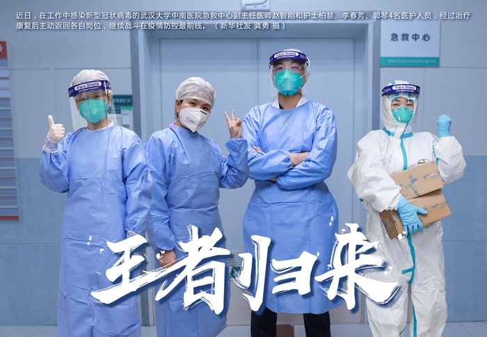 中南醫(yī)院急救中心副主任夏劍說(shuō),4名醫(yī)護(hù)人員工作中感染新型冠狀病毒,康復(fù)后不約而同重返崗位,這不僅體現(xiàn)了醫(yī)護(hù)人員無(wú)私奉獻(xiàn)精神,一定程度緩解科室醫(yī)護(hù)人員壓力,也向患者傳遞了戰(zhàn)勝疾病的信心。
