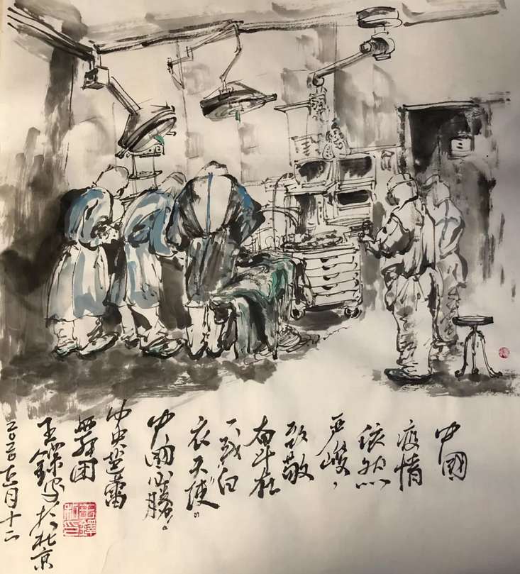 素描畫《一方有難,八方支援!》作者:中央芭蕾舞團燈光設計 周杉行也