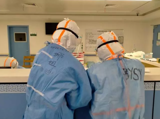 啟用危重癥新病房的第一天,姝姐上了一個“24小時白連夜班”。第一位來診的是個危重患者,姝姐主動請纓:“來,我收這個病人?!绷璩?點,到了該下班的時間,姝姐還在寫病歷,她說污染區(qū)的護士還沒換好衣服,“等她們出來,我再結束工作,我們一起離開”。而這一等又是一個小時……下午15點到21點又輪到北醫(yī)三院隊員們上崗了,她再次主動請纓參加工作,我有些擔心她的身體會吃不消,本想勸阻一下,誰知她微微一笑說:“你姝姐有啥不行的!”直到22點30,姝姐才從隔離病房出來,口罩和眼罩已經(jīng)壓紅了鼻梁,衣服早已被汗水浸濕了,可她仍然面帶著微笑。