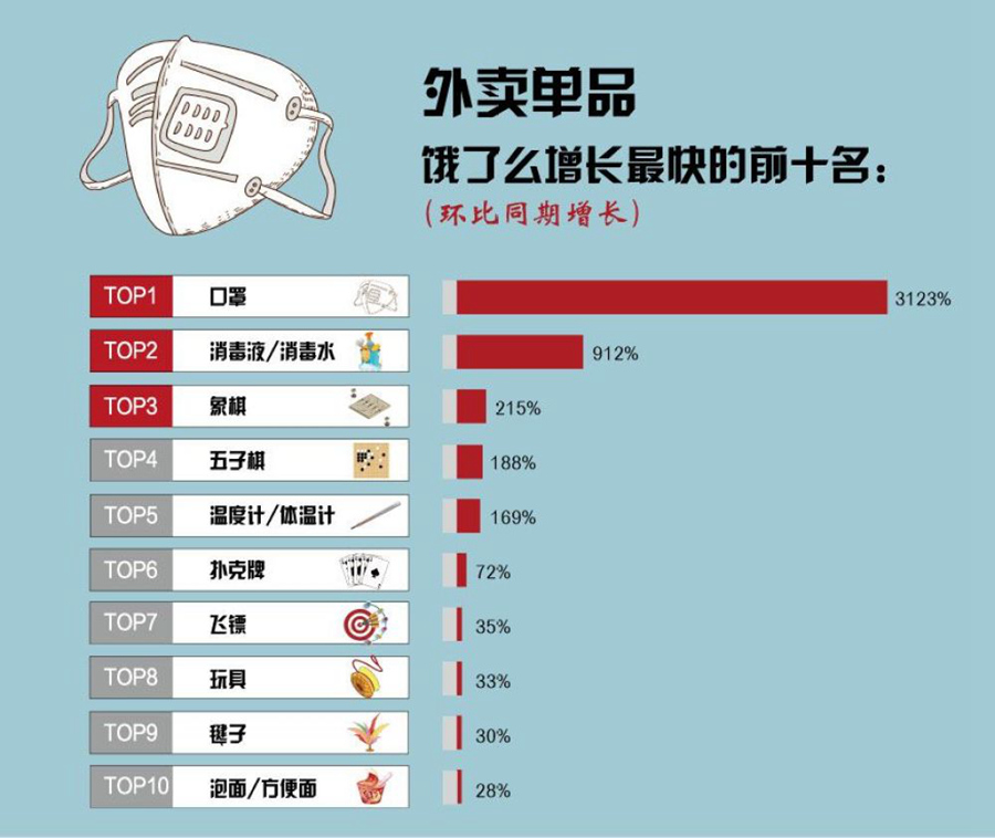1.口罩、勞防用品、消毒液增速如此之快,這是要成為宅家標(biāo)配嗎?看來小伙伴們已經(jīng)get到了防護(hù)必備技能。