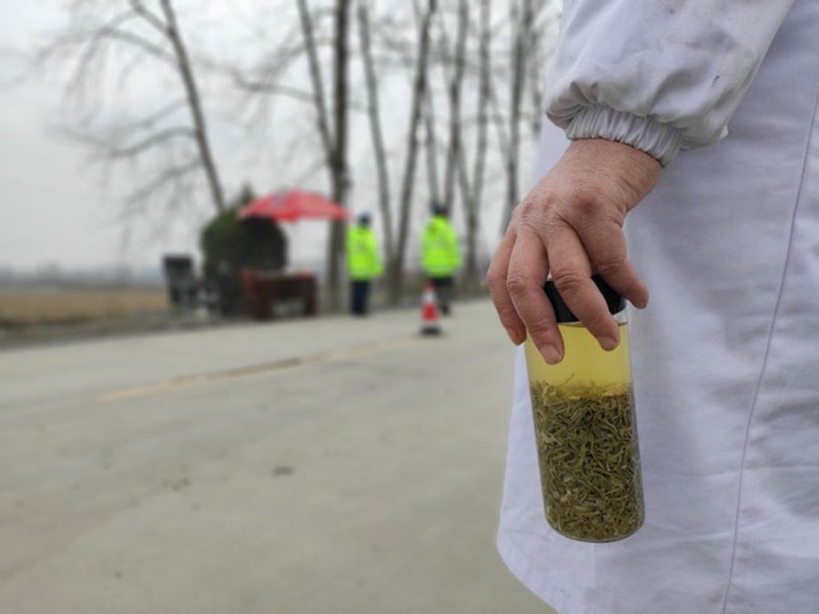 安徽金寨縣漆店村毗鄰湖北麻城,卡點就設(shè)置在省界碑旁。凌晨的大別山腹地,氣溫接近零下10度,紅外線測溫槍在室外無法正常工作。即便自己瑟瑟發(fā)抖,漆學濤還是把冰冷的測溫槍塞進懷中。 “焐一會才能保證準確。”整整一夜下來,漆學濤的手已經(jīng)凍得麻木,甚至按不動測溫槍的按鍵。