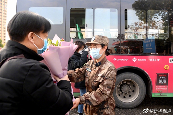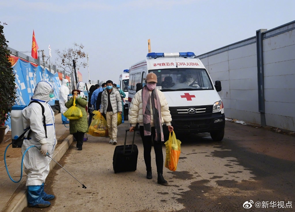 經(jīng)過火神山醫(yī)院醫(yī)護(hù)人員的精心診治,首批7名符合出院標(biāo)準(zhǔn)的新冠肺炎確診患者13日下午出院?;鹕裆结t(yī)院籌備工作指揮部統(tǒng)一安排車輛將患者分別送回所居住小區(qū)門口。