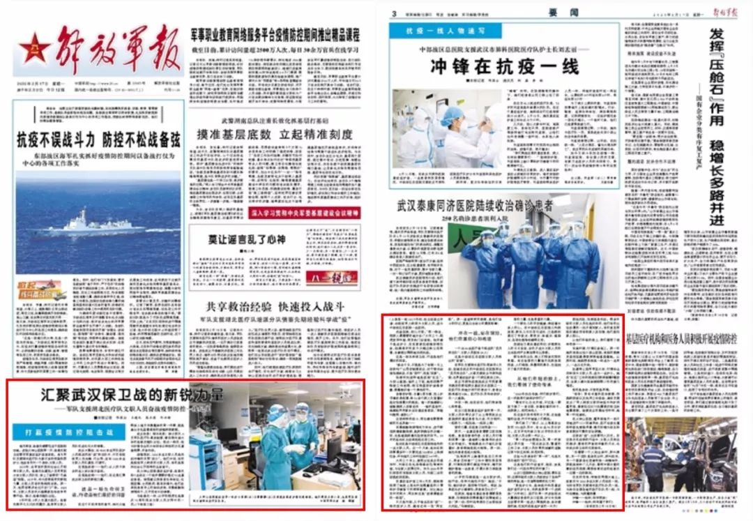 ▲刊于《解放軍報(bào)》2020年2月17日頭版、03版