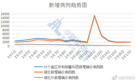 2月17日,31個(gè)?。ㄗ灾螀^(qū)、直轄市)和新疆生產(chǎn)建設(shè)兵團(tuán)報(bào)告新增新冠肺炎確診病例1886例,湖北新增確診病例1807例。這就是說,除湖北外的30個(gè)省區(qū)市和新疆生產(chǎn)建設(shè)兵團(tuán)昨日新增確診79例,這是自2月3日來新增病例到達(dá)高點(diǎn)890例以來的首次兩位數(shù)報(bào)告,也是第14連降。?