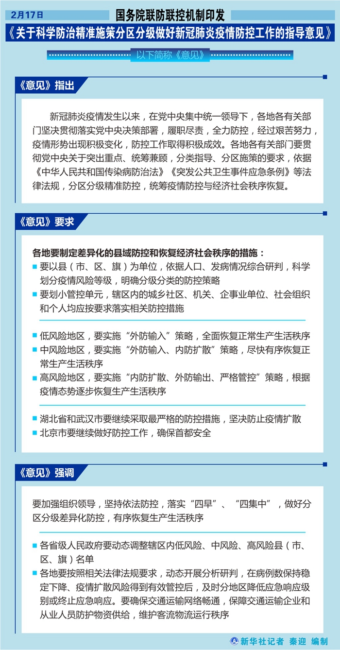 國務院聯(lián)防聯(lián)控機制印發(fā)《關(guān)于科學防治精準施策分區(qū)分級做好新冠肺炎疫情防控工作的指導意見》-新華網(wǎng)