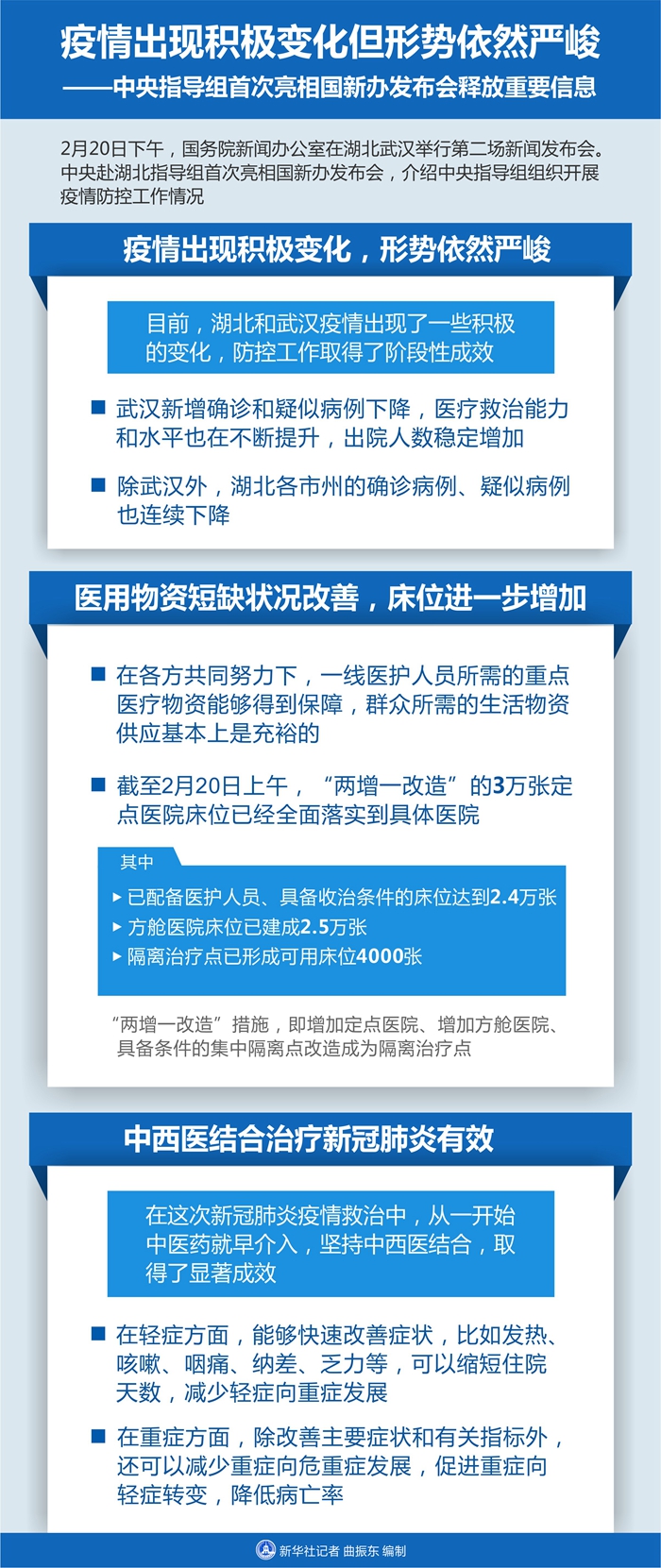新華社武漢2月20日電 題:疫情出現(xiàn)積極變化但形勢依然嚴峻——中央指導(dǎo)組首次亮相國新辦發(fā)布會釋放重要信息