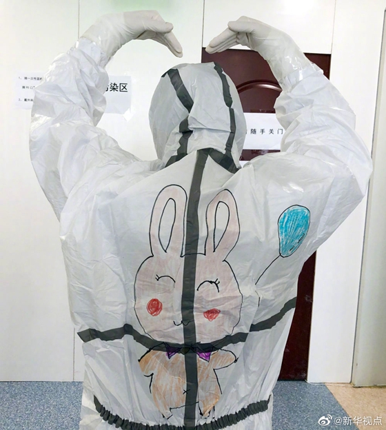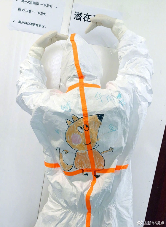 孩子別怕,我們一起在防護(hù)服上畫畫-新華網(wǎng)