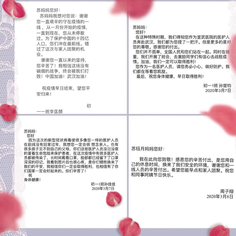 今天,我收到了來自女兒和她所在的北京市第十五中學初一(1)班同學們的38封慰問信。孩子們質(zhì)樸的話語和真摯的問候,真是讓我意外又驚喜,感動又感激,謝謝大家的祝福與鼓勵!